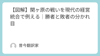 【図解あり】関ヶ原の戦いを現代の経営統合に例えて解説。家康の統合戦略と三成の失敗から学ぶビジネスリーダーシップの重要ポイント。勝敗を分けた意思決定プロセスと忠誠心の構築方法について考察します。