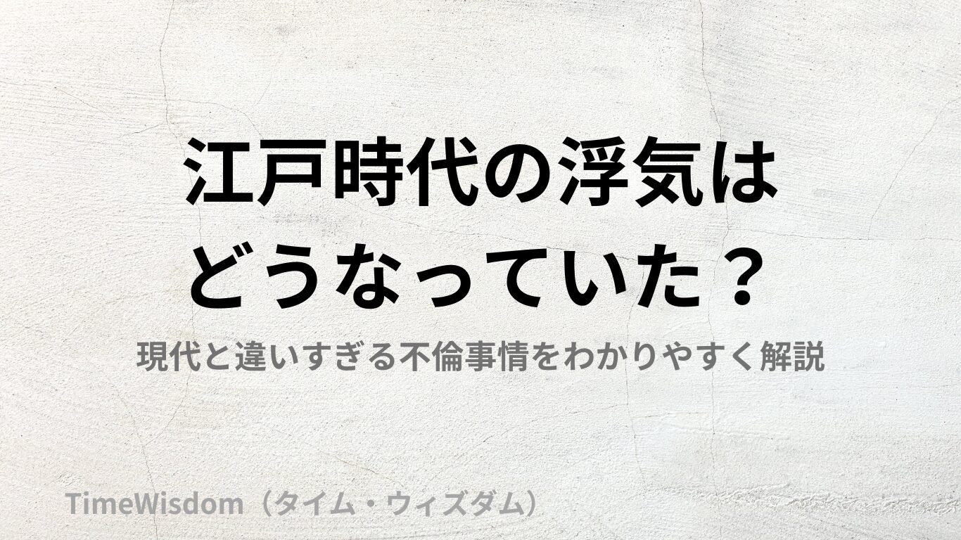 結論からいうと、江戸時代の浮気は「立場によって扱いが大きく違う」ものでした。