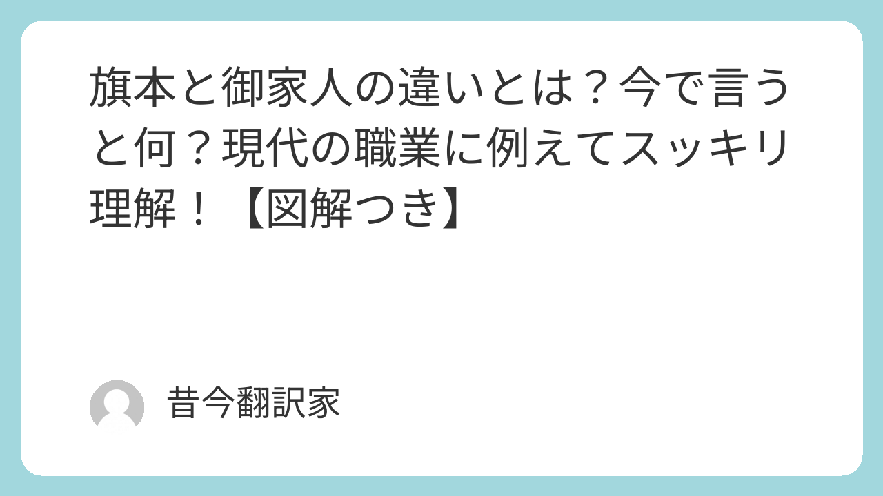 一言まとめ:旗本は管理職候補、御家人は現場の一般社員のイメージです。