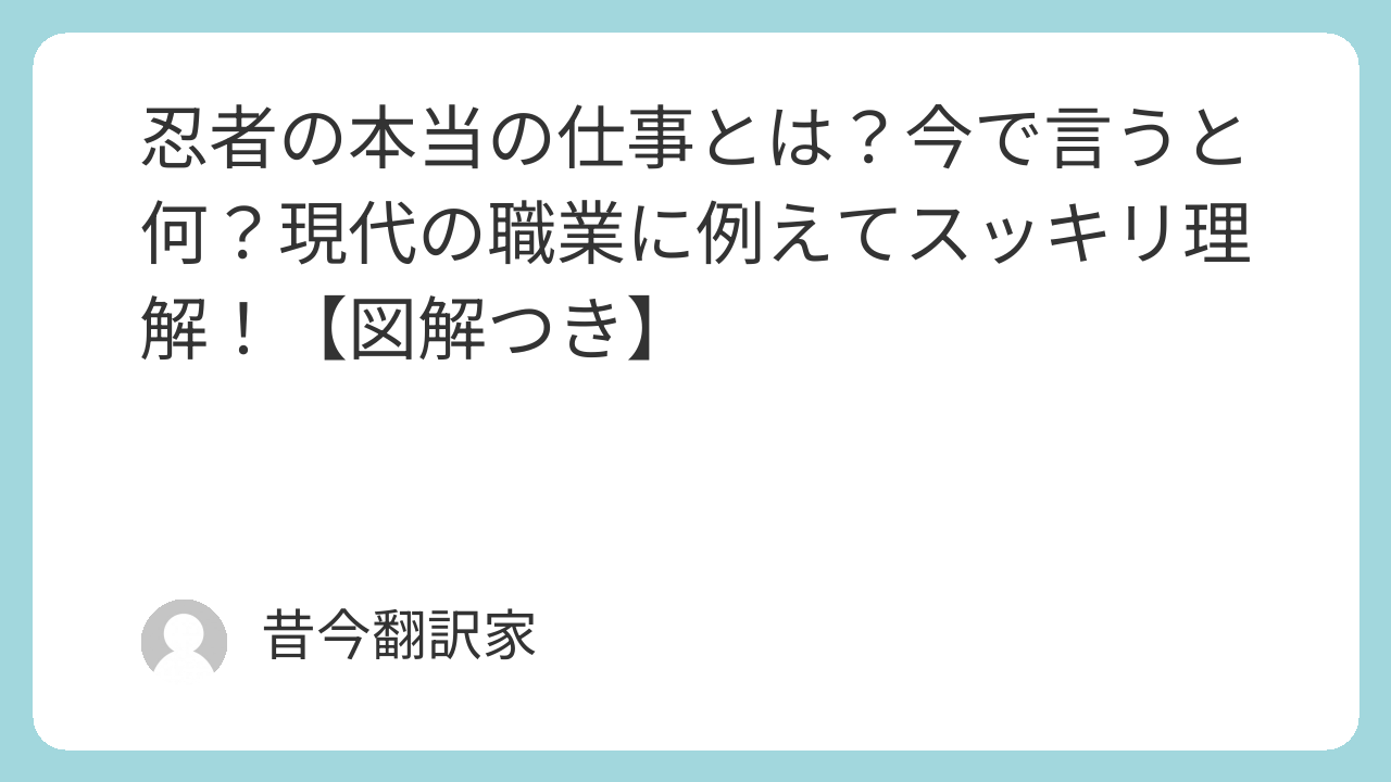 一言まとめ:忍者は「戦う武士」ではなく、裏で動く情報担当でした。
